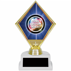 6.5" Diamond Trophy w/ Blue Custom Insert on a White BaseB-33DMDUWM-(CUST)